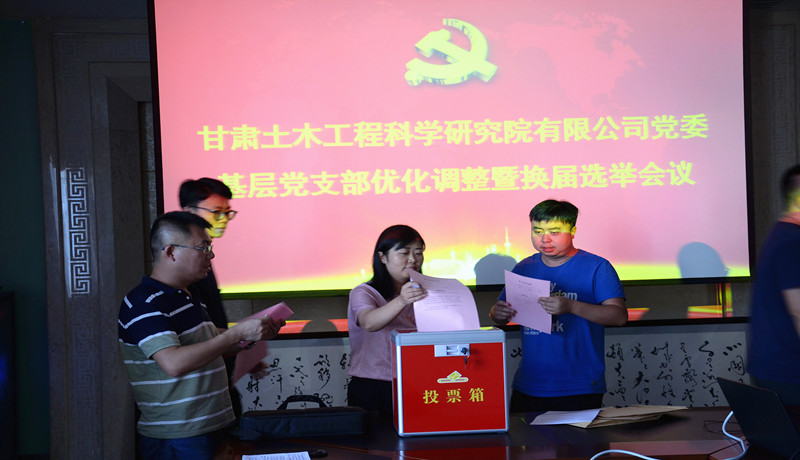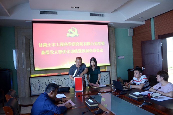 根據(jù)《中國共產黨章程》、《中國共產黨黨和國家機關基層組織工作條例》、《中國共產黨基層組織選舉工作暫行條例》相關規(guī)定,結合新確定的公司組織結構,經公司黨委研究,對公司基層黨支部整合調整設置。調整后設6個在職黨支部、16個黨小組,會議傳達了公司《基層黨務工作者選任及管理辦法》以及《甘肅土木工程科學研究院有限公司黨委基層黨支部換屆選舉辦法》,介紹了候選人簡況,采用無記名投票的方式選舉出支部書記和支部委員。